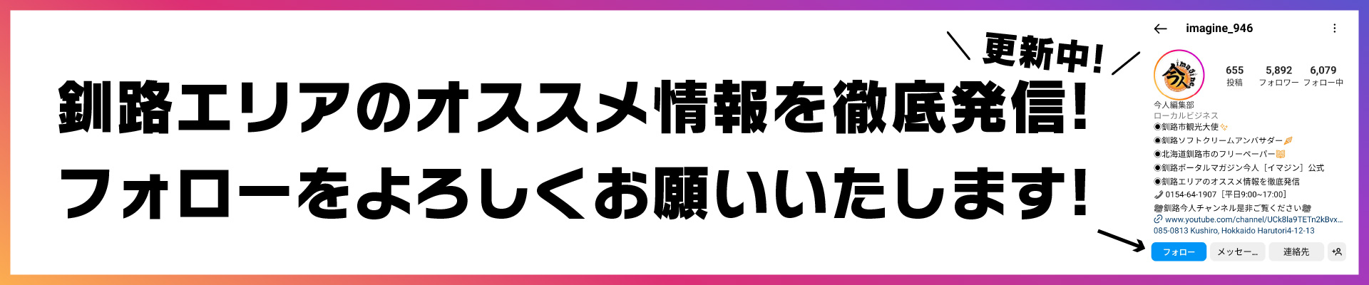 釧路で「今を生きる全ての人」と釧路をどんどん盛り上げたい!!そんな思いの元、今人〜imagine〜は創刊されました。